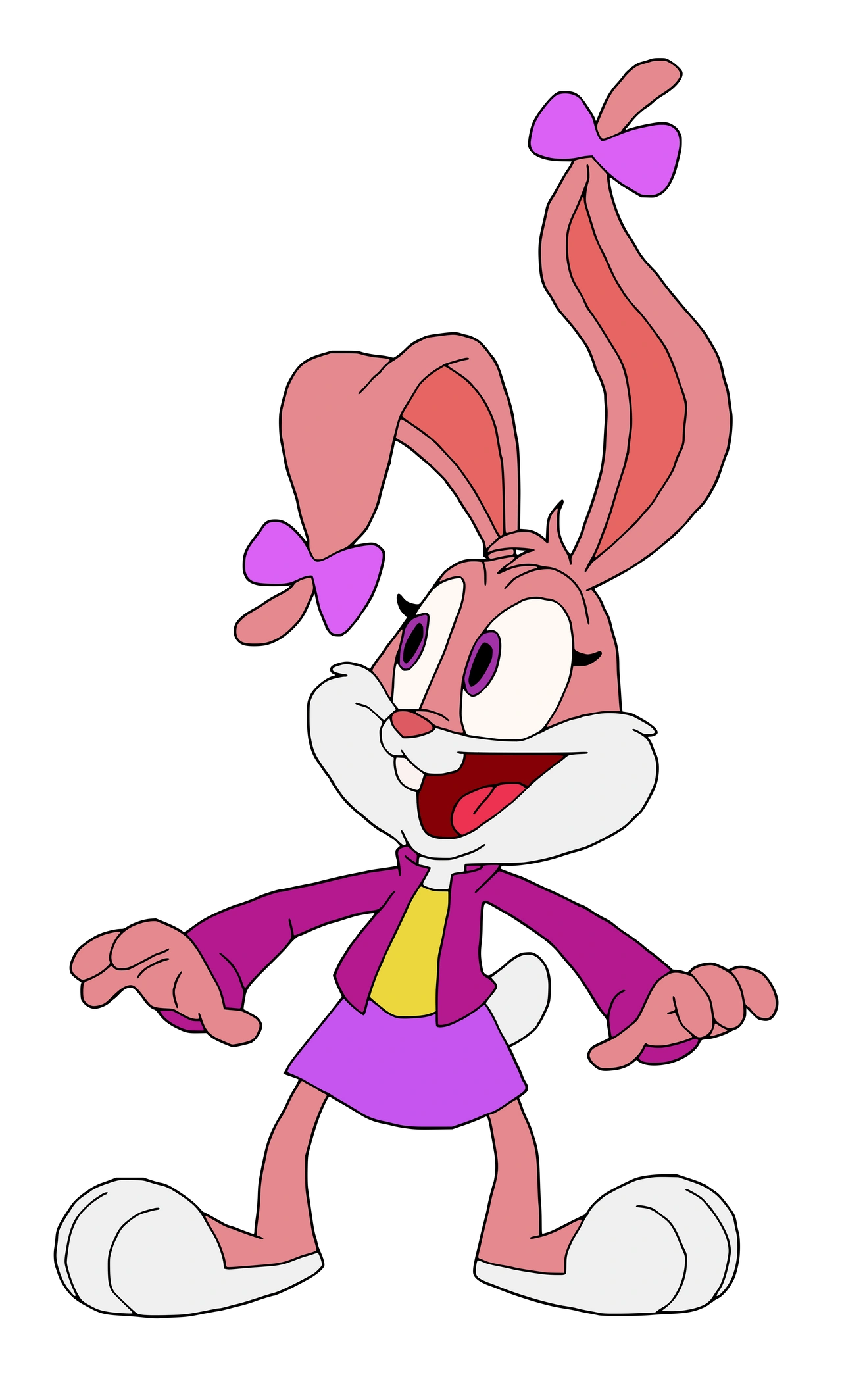 Babs is our new "star;" a cheerful, hyperactive, lovable and irrepressible ham. She's sassy, but with a distinctly feminine flair. Babs is a high energy impressionist and comedienne who doesn't know when to quit. Buster's best friend and co-host, Babs is a one-rabbit entertainment center. Babs is a teen-age rabbit actress, a natural performer, a long-eared clown. She bubbles over with non-stop energy, and is always jumping into a new celebrity impersonation. She uses this skill to amaze her friends, confuse her enemies, or simply to entertain herself when there's no one else around.