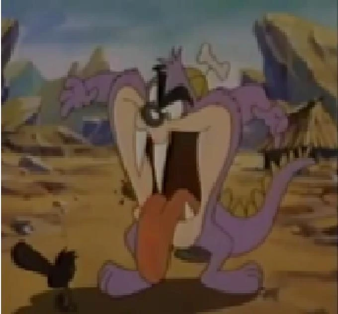 Dizzy's Prehistoric Ancestor is a one-time character and the ancestor of Dizzy Devil who appeared in the episode "A Ditch in Time". He was voiced by Maurice LaMarche,