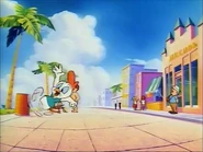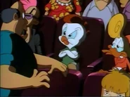 Fowlmouth makes a brief background cameo appearance in Thirteensomething with his head and face shown on a television set