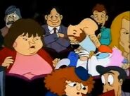 In her second appearance, she is seen singing the Star-Spangled Banner when she falls off the balcony and lands in the lobby, as a response to Fifi saying "It isn't over till ze fat lady sings!". She later appears in the movie theater when Fowlmouth and Shirley are going to see the movie, Skunknophobia.
