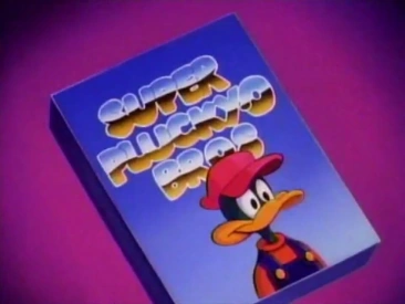 Super Plucky-o Bros appears in a commercial in the Season 1 episode "K-Acme TV". The game parody features Plucky-o (a parody of Mario) and his brother, Linguine (a taller Plucky and parody of Mario's brother, Luigi), traveling through Fungo World (a parody of the Mushroom Kingdom), where they must rescue Princess Loon (a parody of Princess Toadstool/Peach) from the Toadstool Tower. To rescue her, players must pick the right magic kumquat from a tree. Linguine tries to do so, but is chased away from said tree by the Dizzy Doofus (a parody of Bowser/King Koopa), and Plucky-o evades various enemies larger than himself, until he finds the Giant Nyah-Nyah of Power (a parody of a combination of the Star and Fire Flower power-ups) that turns him into an invincible giant who defeats the enemies and rescues Princess Loon. The game ends (with a Game Over), revealing Plucky playing the game in an arcade. He says, "It's more than a game, it's an obsession!," as a pair of chattering teeth from the game chases him across the arcade. The announcer then states, "It's Super Plucky-o Bros for your Numbmindo system. Whine, scream and cry until your folks break down and buy you one! Only $879.99. Batteries, instructions, joystick and game not included."