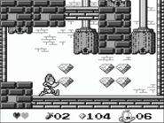 2. City - Furrball is your helper in this stage. To find him. you must play a game where you have to guess which trash can he is in. If you guess right two out of three times, he will help you by crawling under the low pipes. In the later half of the stage, you will ride a train to Arnold's Gym. The boss is Arnold the Pit Bull. To defeat him, you must jump on him when he is making poses. If he catches you, he will bounce you like a basketball, and toss you in one of the hoops.