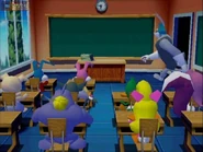 When his disguise is blown, the group chase after the fleeing robot. After stopping the robot from getting away, he makes an attempt to kill everyone, but ultimately fails, leaving a hole in the ground. There, zig and zag appear out of the hole, startling the group. The strange creatures explain their situation and the group agrees to help them.