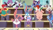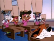 He makes a cameo appearance in the episode, New Class Day. He is shown at Acme Looniversity in the introduction to the segment, Sound Off, but is shown here with a clueless and dumbfounded demeanor and expression on his face.