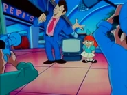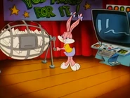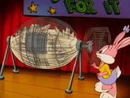 Elmyra disguises an armadillo as herself so her parents will take it home instead of her